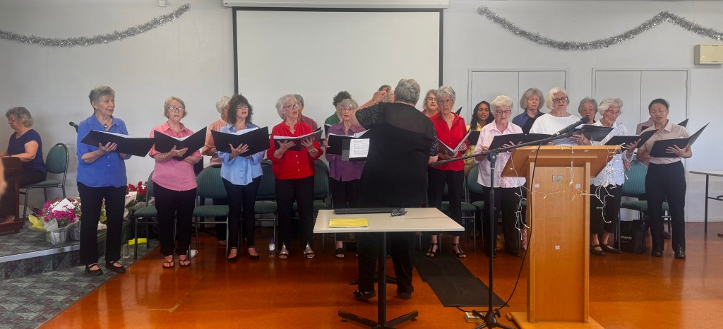 The Howick Singers entertained the members at the Christmas event. Two speakers from the Writing Group, Judy Wilson and Colleen Rigby read entertaining christmas themed stories. Margaret Nicholls, Alan Read and all convenors were thanked for their contribution.